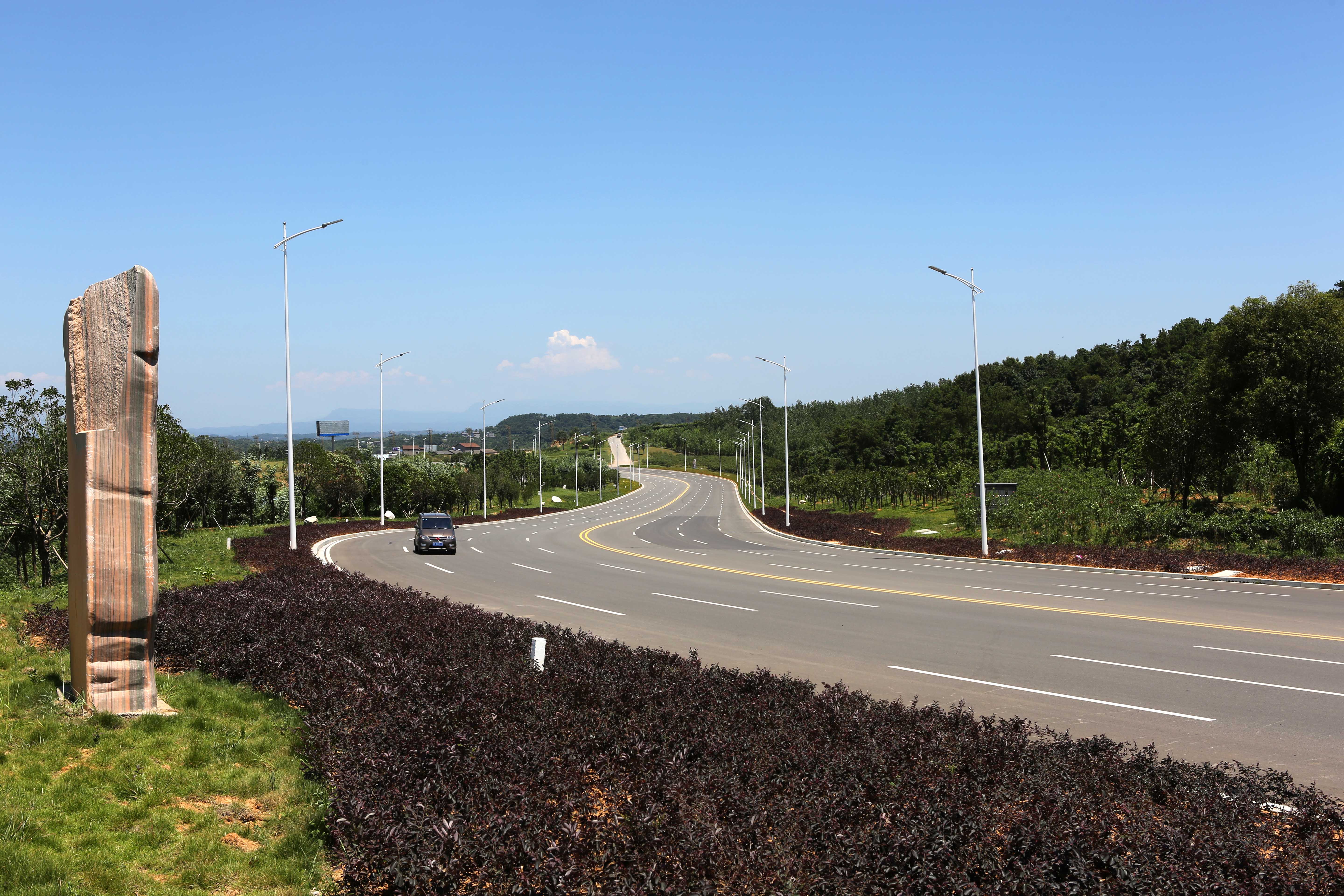 宜昌三峽機場路綜合改造工程。項目起于漢宜高速公路猇亭收費站,止于三峽機場候機樓廣場西側(cè),道路全長3558米。項目分兩期實施:一期工程為道路及景觀綠化工程,將現(xiàn)有道路由雙向四車道拓寬為雙向八車道,道路等級為城市主干道,設計車速為60公里/小時,道路寬度37米,并增設先鋒路和七里沖路兩處下穿通道。二期工程為三峽機場候機樓站前廣場和漢宜高速公路猇亭收費站改造。工程概算投資3.91億元。項目2013年10月開工建設。